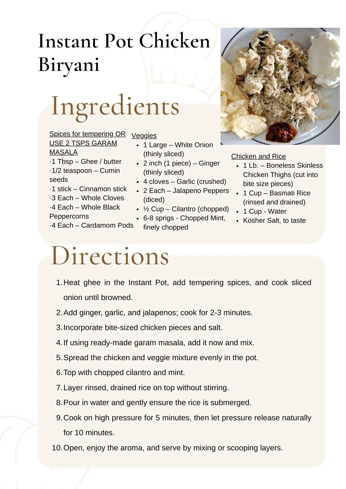 Instant Pot Chicken Biryani